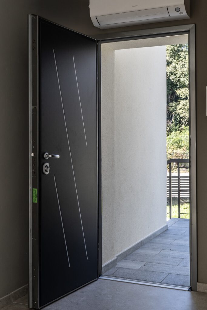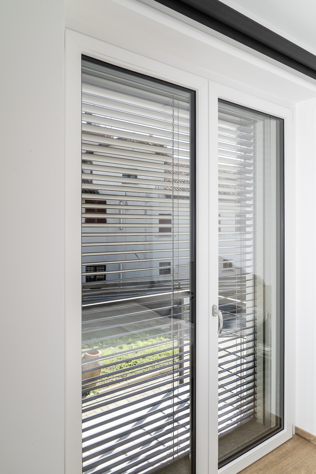 Per ottimizzare le prestazioni, sono stati installati controtelai termici, fondamentali per una corretta preparazione del vano finestra e per migliorare l’isolamento. Completano l’intervento i serramenti bicolore da 86 mm abbinati a frangisole motorizzati, che permettono una gestione efficace della luce e del comfort abitativo.